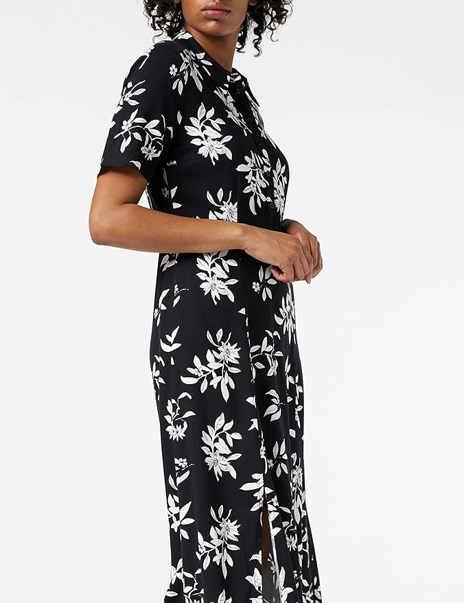 Dieses Kleid zeichnet sich durch sein stilvolles Design aus. Der Schnitt ist klassisch und gleichzeitig modern, wodurch es zu einem zeitlosen Stück wird, das nie aus der Mode kommt. Die schwarz-weiße Kontrastverzierung verleiht dem Kleid eine besondere Note und macht es zu einem Blickfang. Die Kombination aus Eleganz und Raffinesse macht es zu einer ausgezeichneten Wahl für Damen, die stilvoll auftreten möchten.