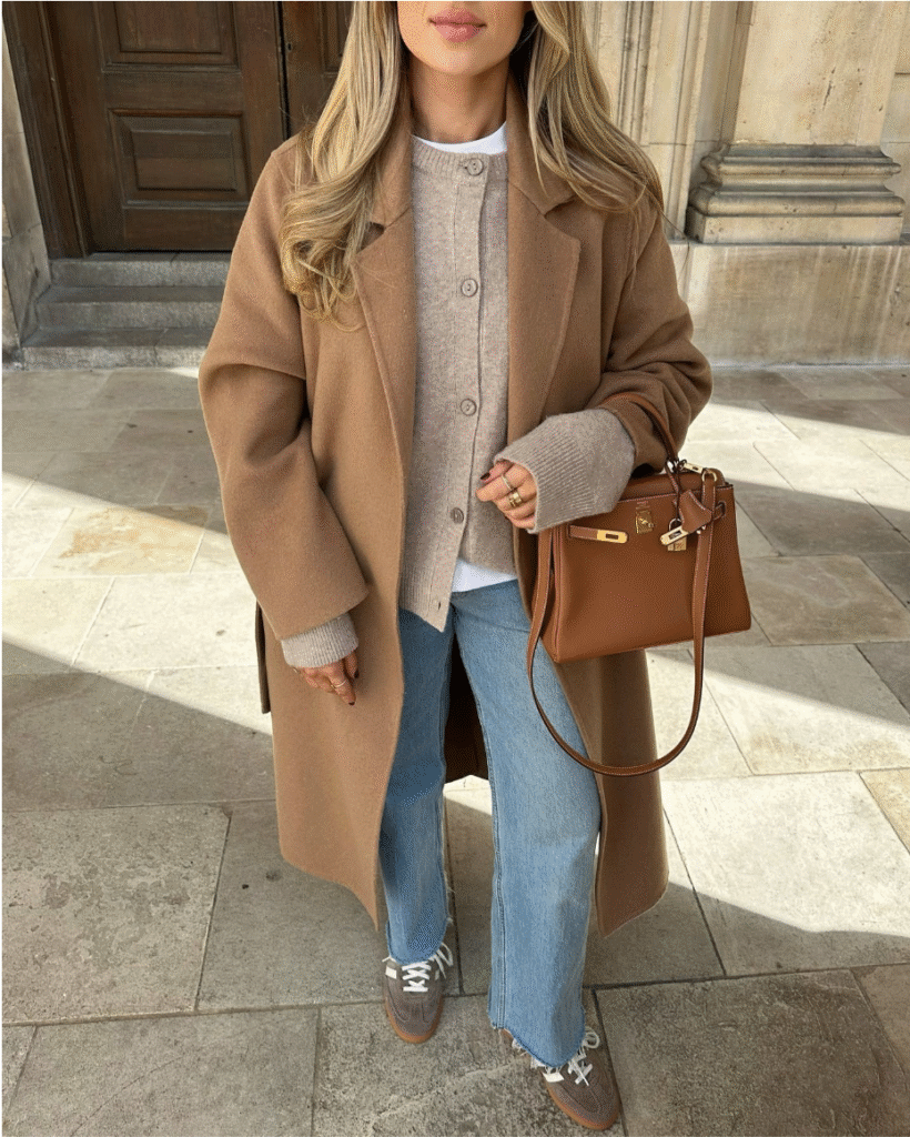 - Gerade geschnittene, zweireihige, kamelfarbene oder dunkle Mäntel sind im Herbst und Winter besonders vielseitig. Kombinieren Sie sie mit Jeans aus verschiedenen Materialien und ergänzen Sie den Look mit mehreren Schuhen und Taschen. – Anlassvielfalt